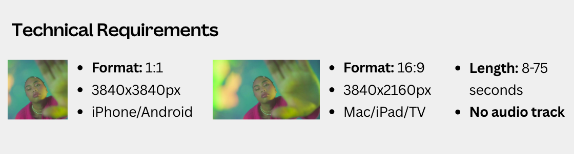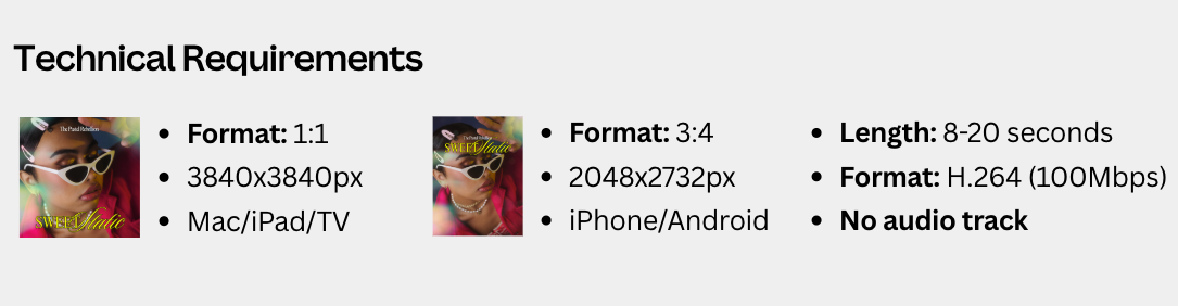 - Keep it Cohesive: While you have creative freedom, this motion art should still feel connected to your cover art and artist image. Use a consistent colour palette, font style (if you add text), or visual theme to build a strong, recognizable brand.