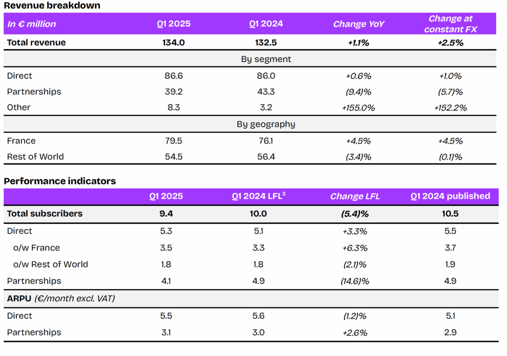 Nous avons commencé l’année avec une dynamique positive, en réalisant une croissance du chiffre d’affaires conforme à nos attentes et en augmentant notre base d’abonnés directs en France. Comme nous l’avons annoncé précédemment, nous nous concentrons pleinement sur la mise en œuvre de notre nouvelle orientation stratégique, en introduisant des expériences musicales audacieuses et innovantes conçues pour créer une valeur durable pour les fans, les artistes et nos partenaires. De nouvelles fonctionnalités sont déjà en ligne, avec une personnalisation intuitive et un partage universel, donnant le ton à ce que nous continuons à construire – une expérience musicale de niveau supérieur basée sur les attentes des fans de musique d’aujourd’hui et de demain. C’est avec confiance que nous confirmons nos prévisions pour 2025 et notre objectif d’atteindre la rentabilité cette année.
