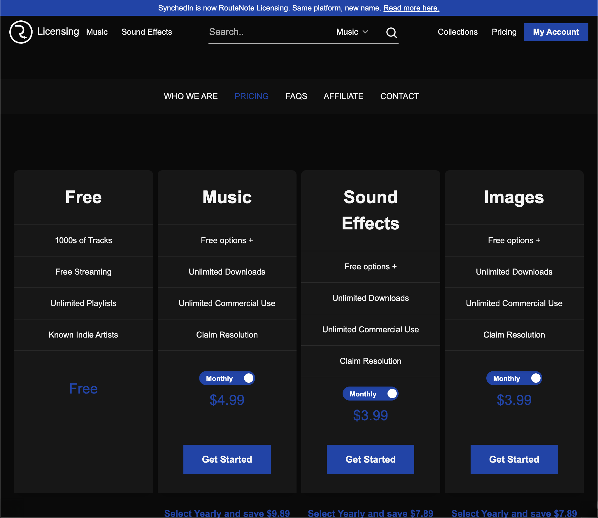 Subscriptions are the most affordable in the industry. You can browse, create collections and download a selection of tracks for free. For sound effects, it’s $3.99 per month or $39.99 per year. For music, it’s $4.99 per month or $49.99 per year. A subscription to any tier additionally gets you unlimited downloads, unlimited perpetual commercial use, and claim resolution on YouTube, Facebook, Instagram and TikTok.
