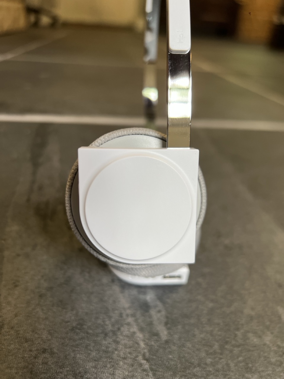 The included cable is a unique three-ended USB-C cable. Usually with over ear headphones, installed in the headband, there will be a physical wired connection between the left and right side. This means if you want to charge the headphones or use wired audio, you only need one cable inputted into one port. With the Hp1, there is no physical wired connection between each side, so charging and wired audio must by plugged into each side independently. The two USB-C ends connect to each side of the headphones, while the one USB-C end plugs into your device. While you can use a regular USB-C cable to charge the headphones, you’d have to charge one side and then the other, or have two USB-C chargers. Finally included in the box is a USB-C to 3.5mm audio jack to connect the headphones to older devices.