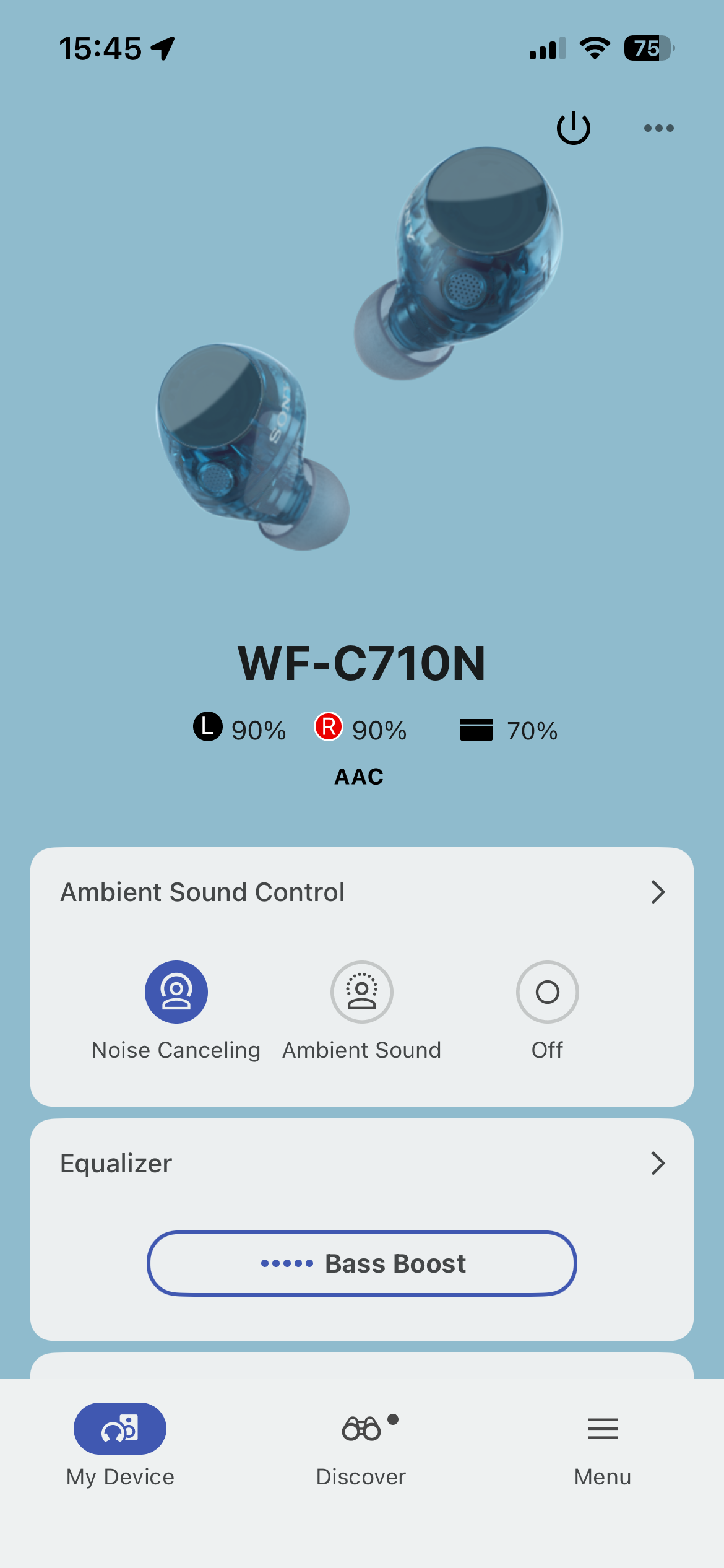 Thanks to their in-ear design, the Sony WF-C710N get louder and overall sound better than my AirPods. At full volume, they are plenty loud enough and suffer with no distortion, but are perhaps a little lacking in the low-end. This can be more than made up for using the app’s equalizer and Clear Bass feature.