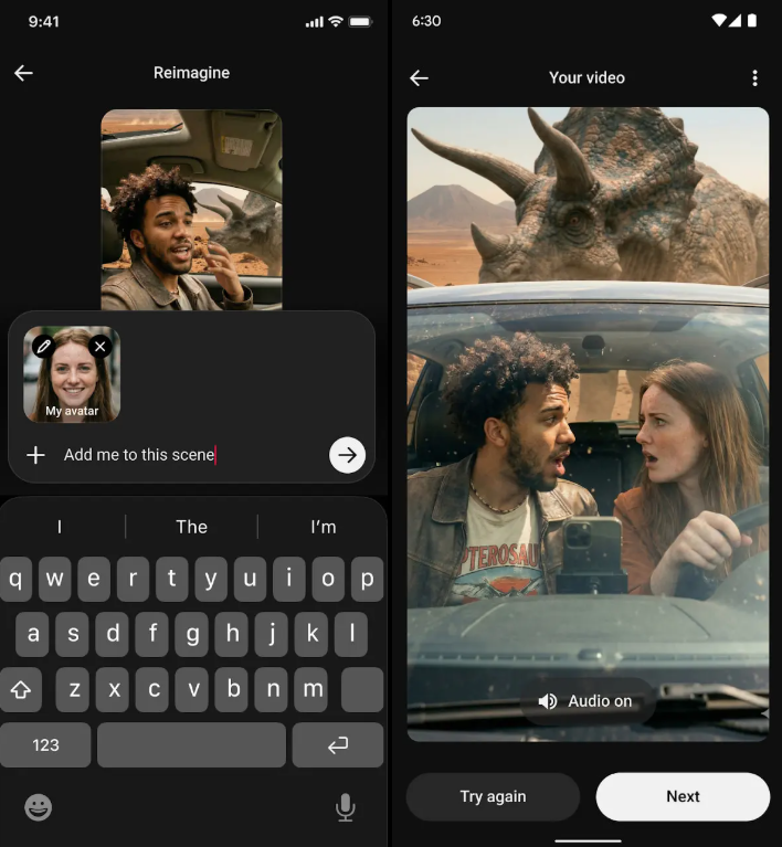 Once you’re set up, you can start generating by typing a prompt for the type of video you want to create. Or, you can add your avatar directly into eligible existing Shorts via the Remix > Reimagine > “Add me to this scene”. Within the YouTube Create app, tap “Generate video” and select your avatar to use it as a reference in your prompt.